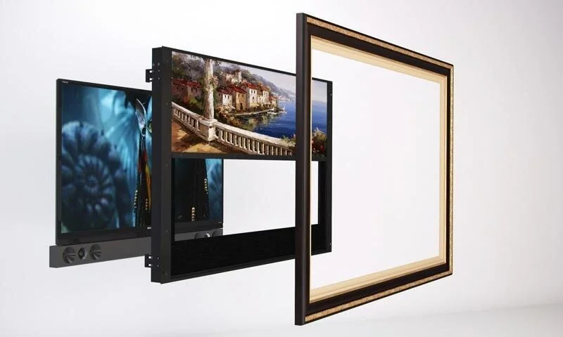 our hidden art tv slides to reveal the tv behind